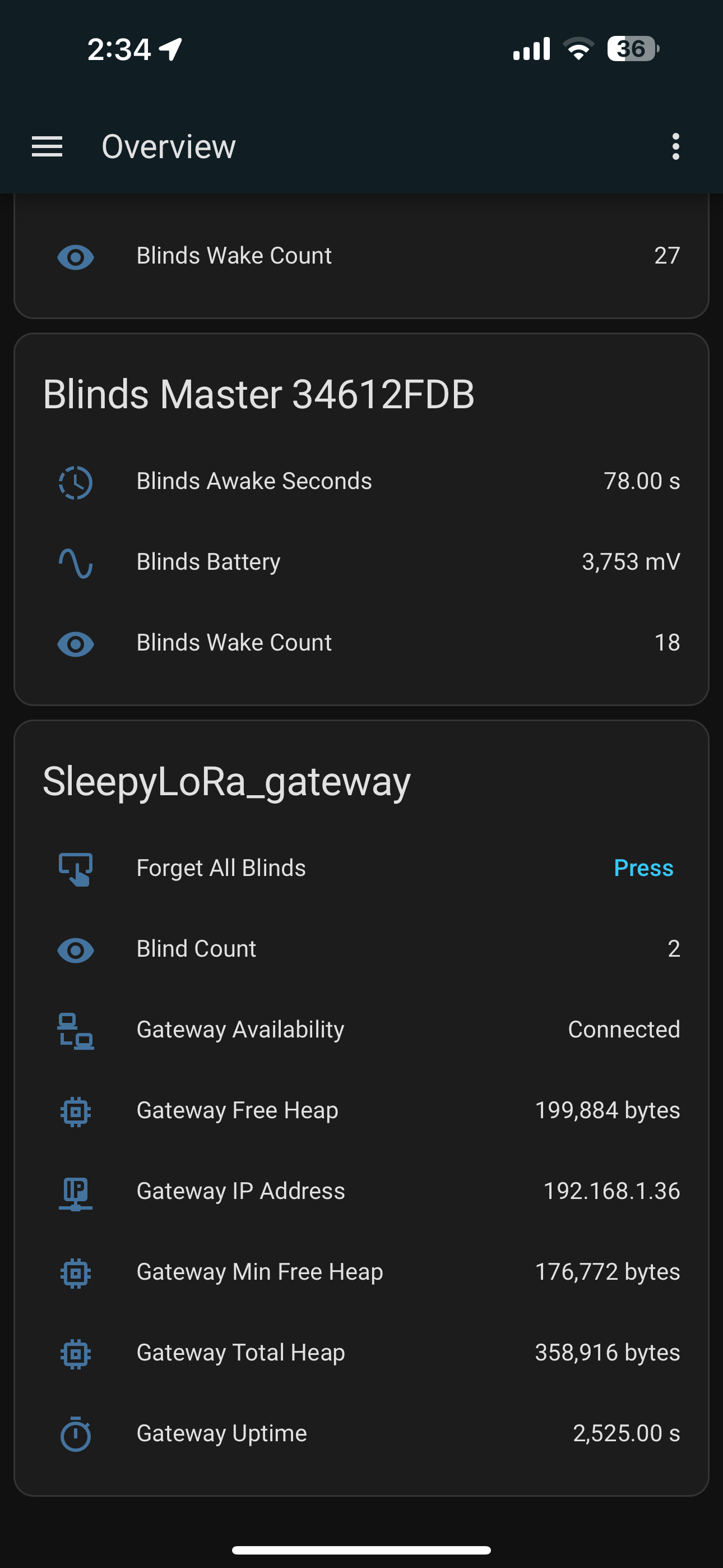 As for the gateway, will probably need to look at the serial logs for that too… I wonder if because there is no blinds reporting valid data if it’s doing a reset …