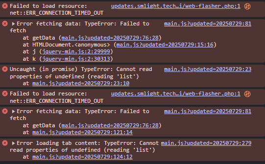 I keep getting errors on all my smlight slzb-06 and slzb-06m when using the UI to check for updates:
