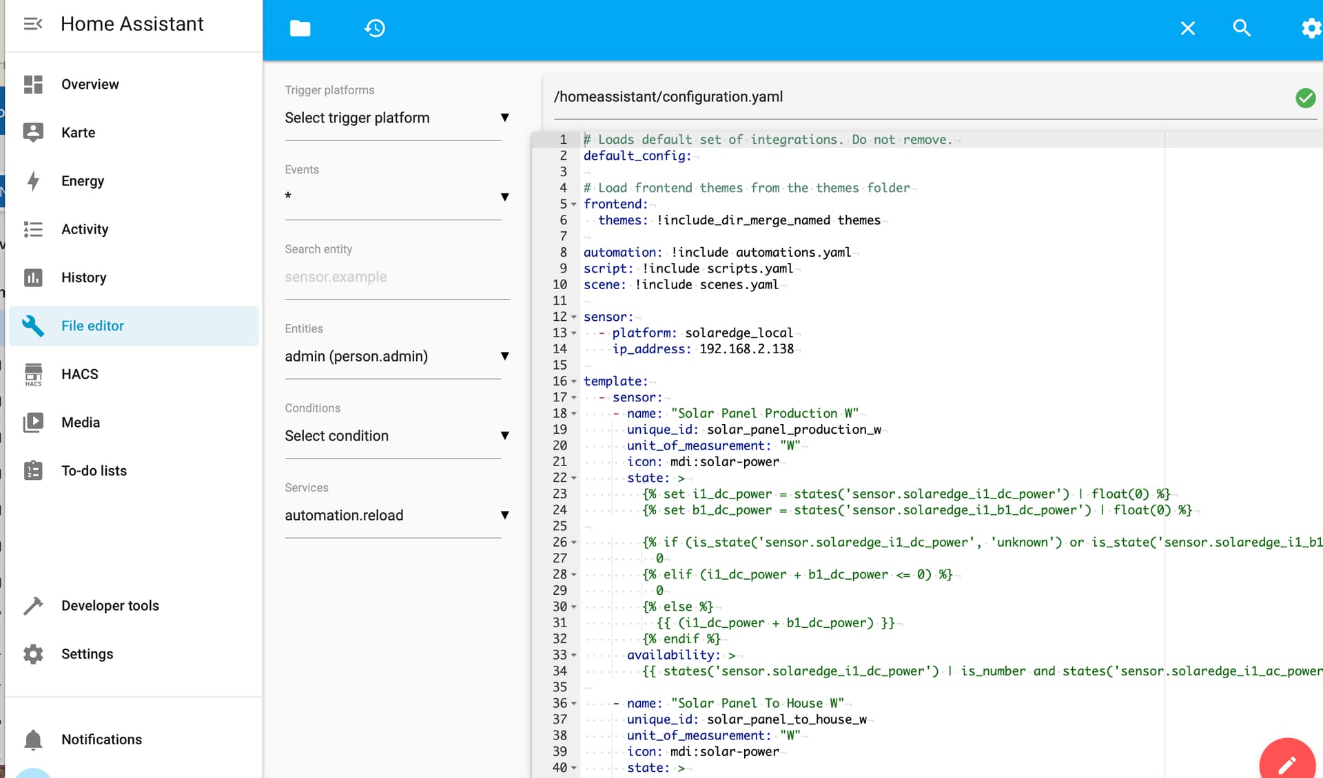 If you want this thread to work, you must follow the steps as described. I see all the code in de configuration.yaml file. This could work, but then I or anybody else can’t help you. I created this thread with 2 things in mind: a solution for my specific sensor naming based on using ‘SolarEdge Modbus Multi’ and ease of use if you follow the steps. In step 3 and 4 of the first post (SolarEdge Modbus Multi config for Single Inverter, Battery and Backup Module/Meter) you see that you have to create 3 files in a folder called ‘solaredge’. So maybe try again, but follow the steps exactly. It should work then. ![]()