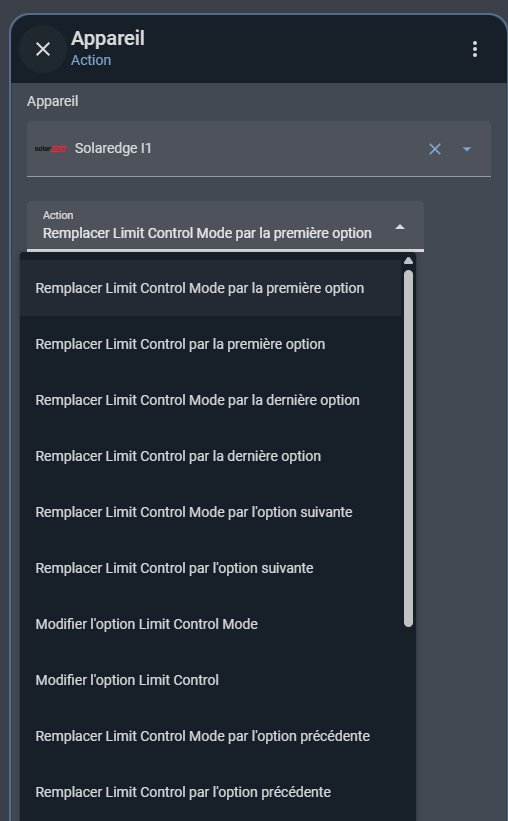 The problem is that there are no ‘actions’ in the Solaredge Modbus Multi integration so if this can be done at all it would need to be done using raw YAML of which I have no experience. Various paragraphs of code have been suggested on this blog, but my knowledge of YAML is not sufficient for me to be able to integrate them.
