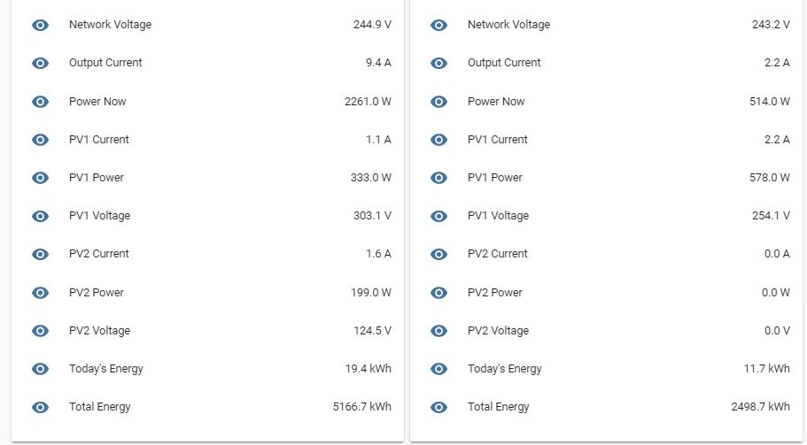 I currently have 3 of my 4 PV Input’s producing power and displaying the generated watts in home assistant as individual but would really like just one figure