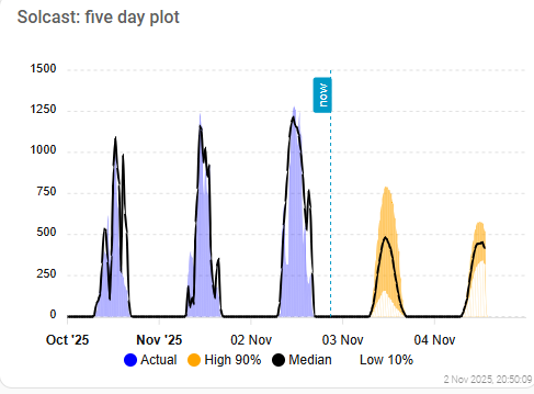 Allow for the fact that, with a Solcast hobbyist account, you don’t get more than two days forecast ahead, and you also need a two day hindcast backwards