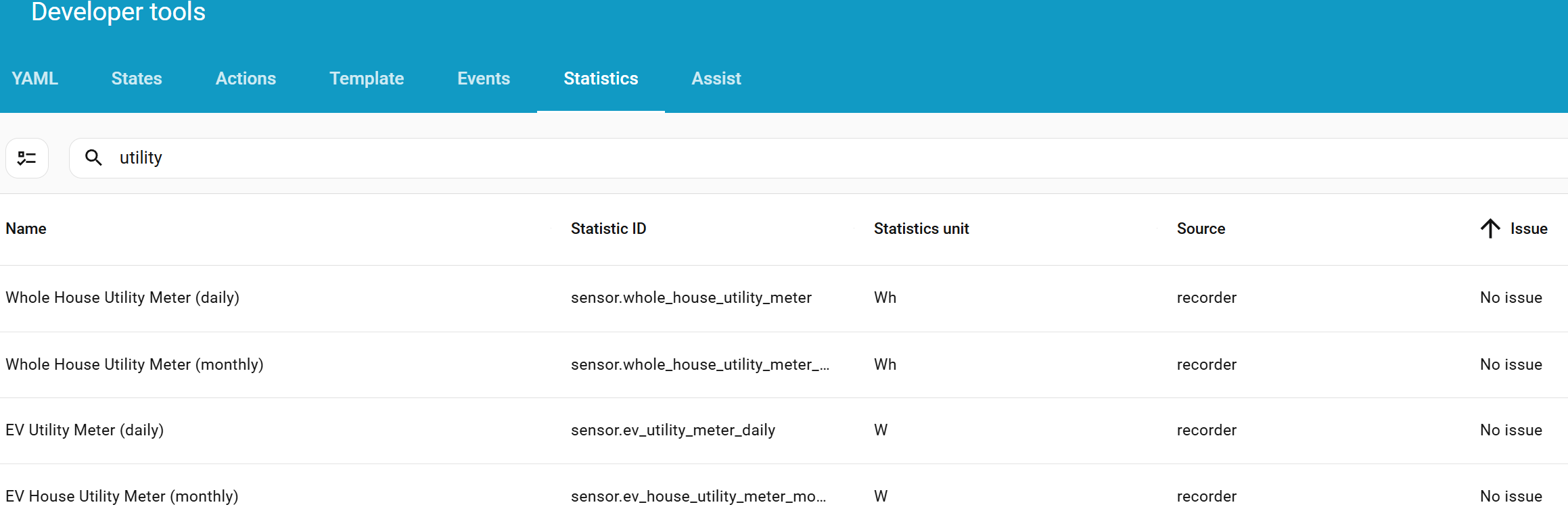 Hi all, I’m going a little crazy here and I’m sure I’m just missing something simple. I have various power meters, and they all measure in W. For my utility meters, I fork them off and calculate kW to feed into integrations → utility meter. I do this for two items: my “whole house”, and my “EV charger”.