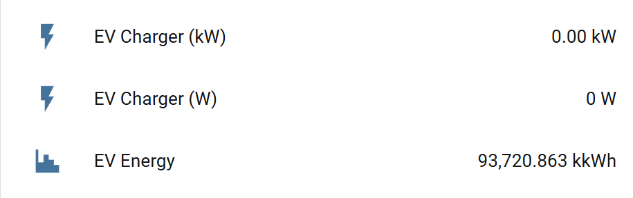(below) House looks good. ignore the values (negative is from solar). EV energy changed the icon and has a werid unit (?)
