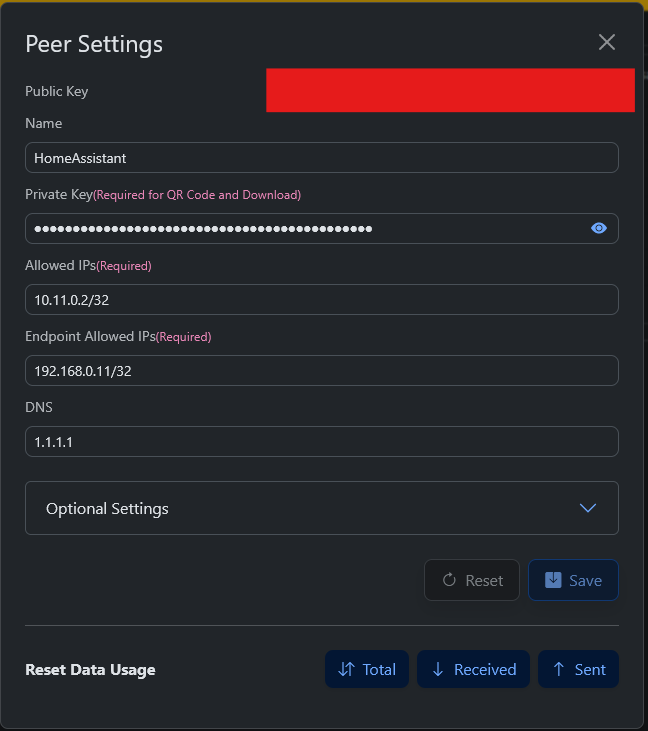 I created a new WireGuard configuration and you have to set up the additional settings.