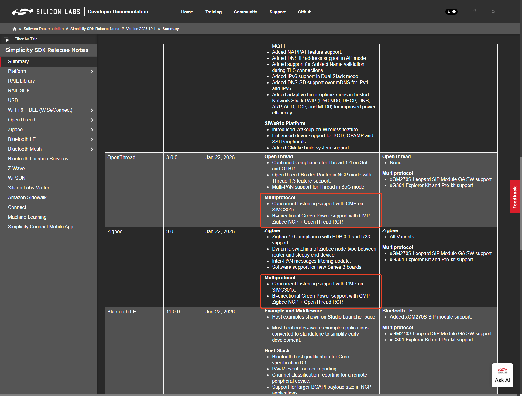 Silicon Labs is continuing developing its Multiprotocol technology, also with the feedback and contribution from its buisness partners, like Aqara and SONOFF. Please refer to Simplicity SDK Version 2025.12.1 - Release Notes (Feb 5, 2026) | Summary | Simplicity SDK Release Notes | v2025.12.1 | Silicon Labs for the latest update on Multiprotocol.