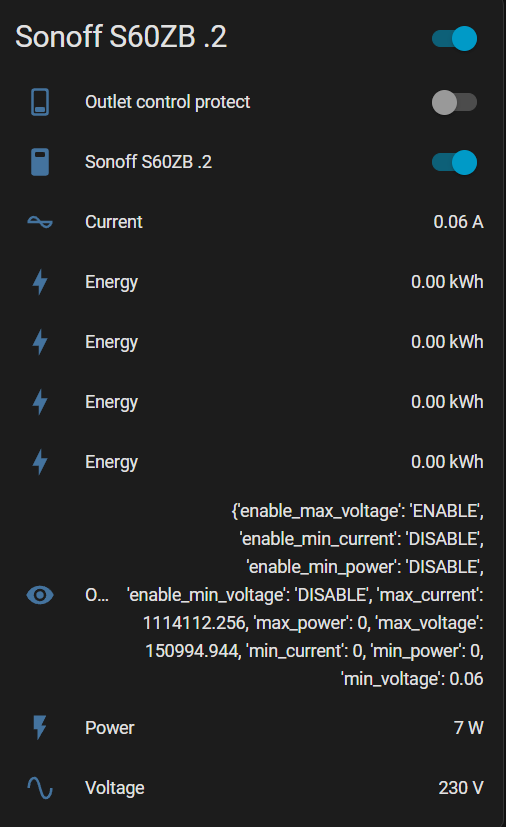 I added a couple of S60ZBTPF devices to my HA container via Zigbee2MQTT. They appear in the following way in HA, which looks weird to me: