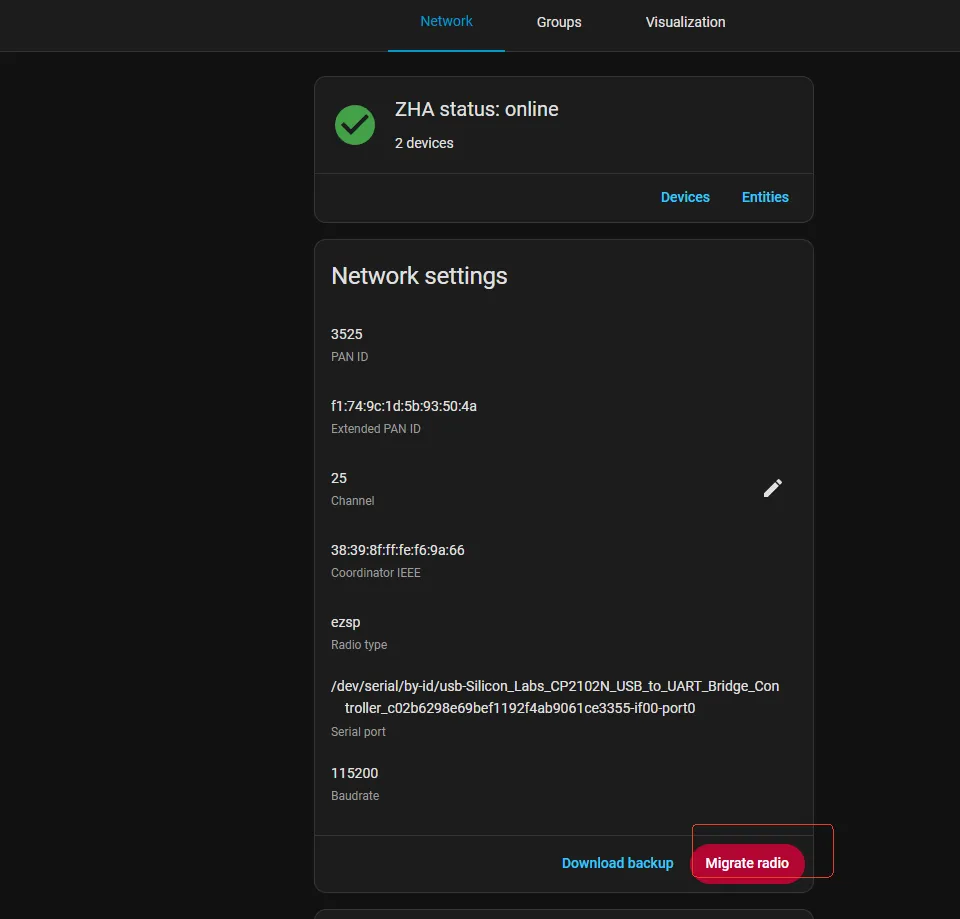 I migrated from a Sonoff Dongle P using zstack and cloned the IEEE.