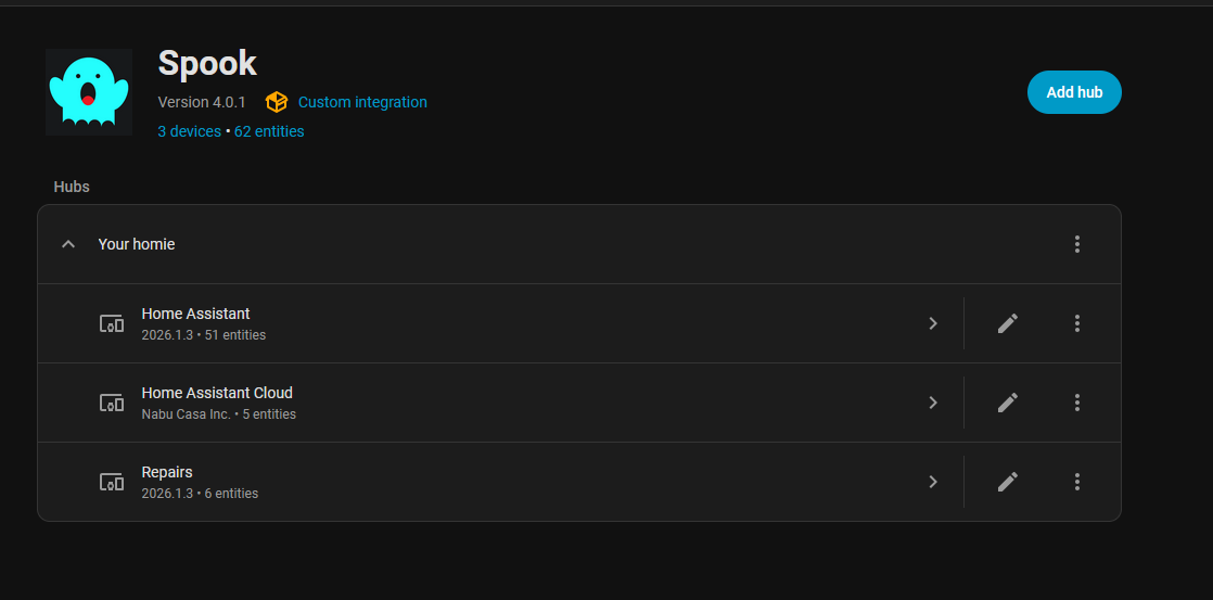 If you check your other integrations, this button is used for adding more devices (“hubs”) using the same integration - for example if you have two TVs of the same brand. For spook this does not apply, just ignore the button.