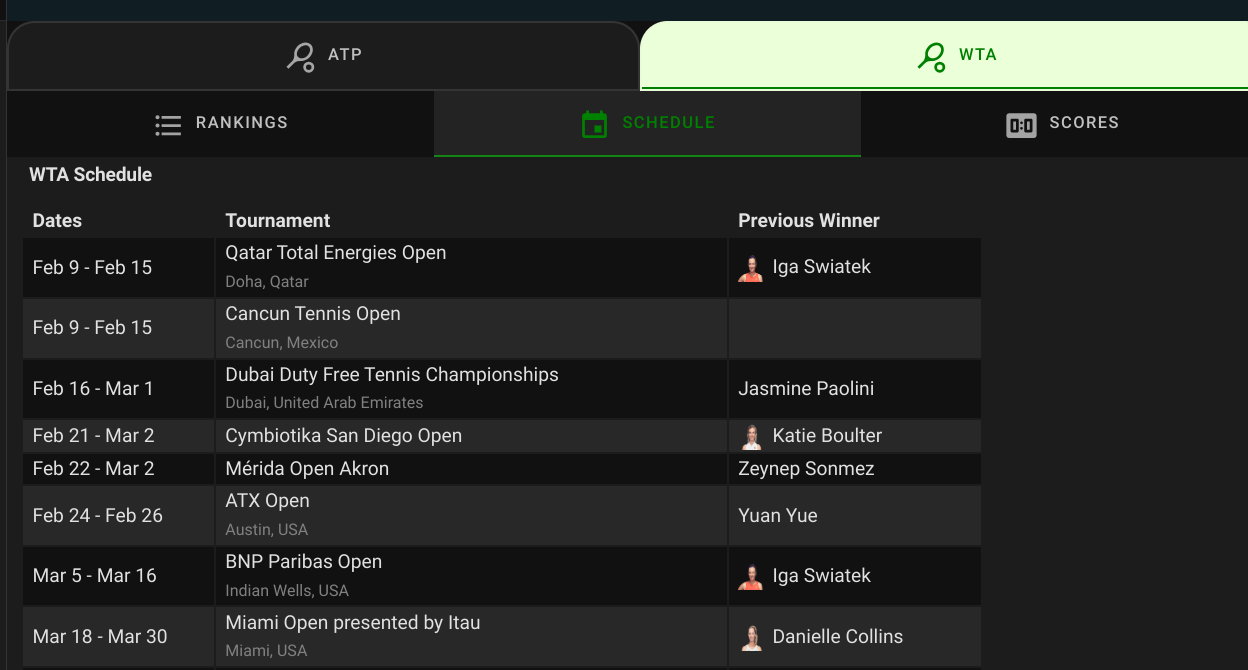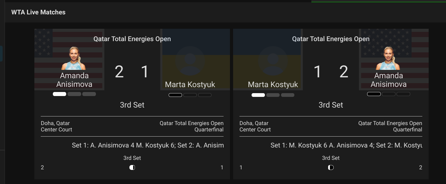 So I was curious how Tennis works with TeamTracker because they are individuals and not teams.  It would be cool if you could just have teamtracker do events instead of individuals or some other method to simplify the code but I am not sure how that would work.