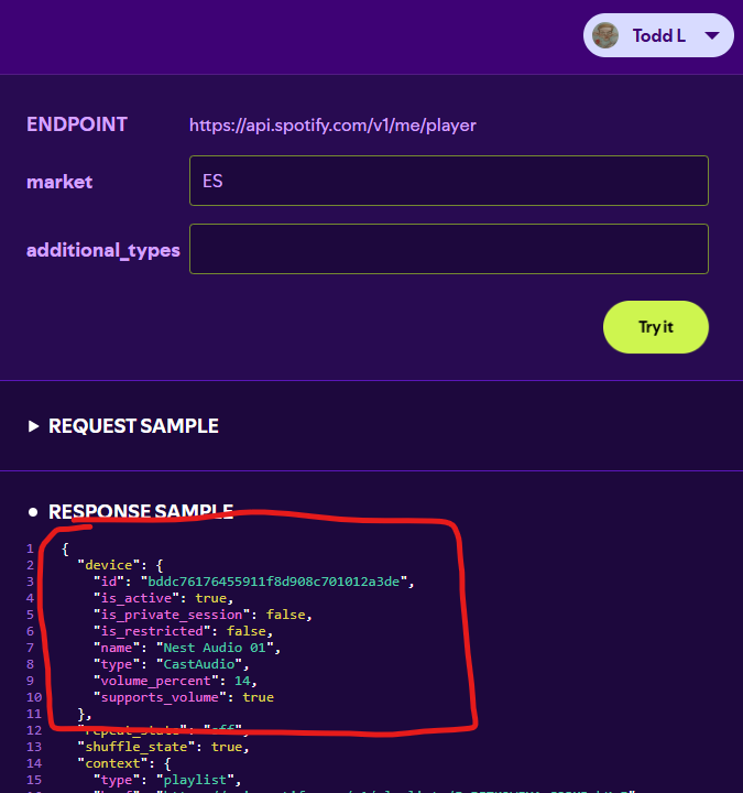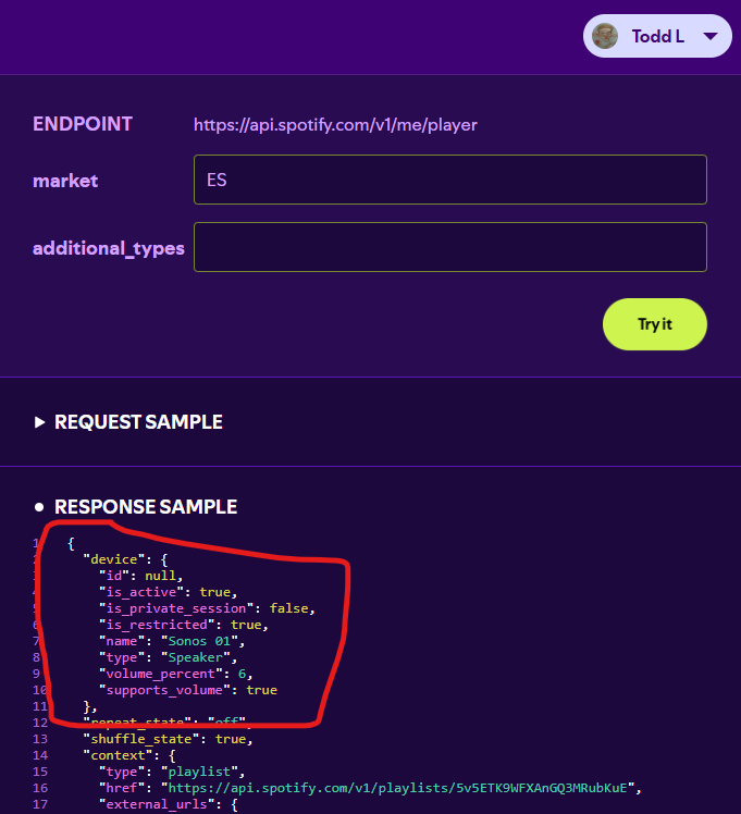 You can see what I am talking about with the device id not being populated for restricted devices in the Spotify Web API playerstate by issuing a call via the Spotify Developer web portal.