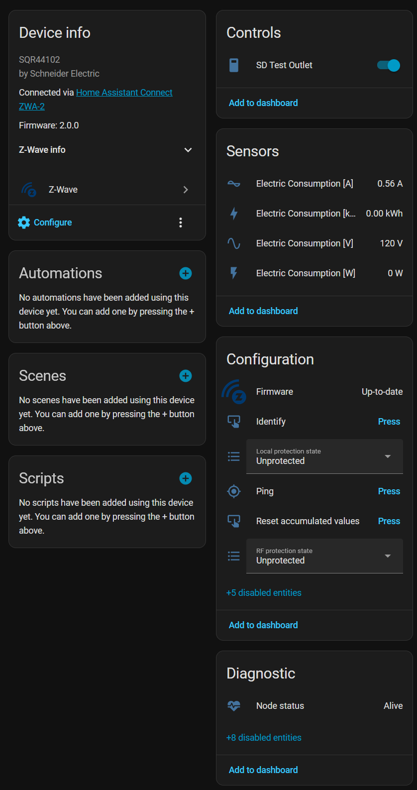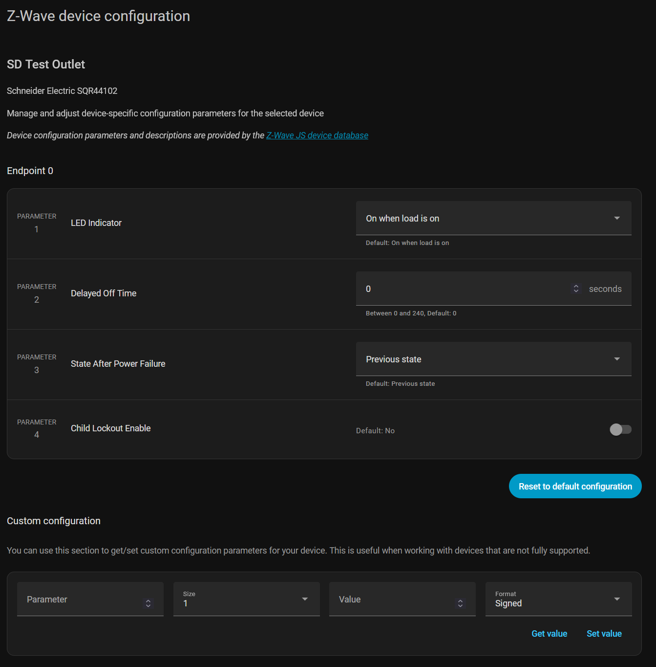 Overall this plug seems like a solid option to add energy monitoring at the outlet level. The power reporting is almost instant which is useful for triggering automatons based on power draw. The power reporting doesn’t seem to “chatty” either. After initially powering a device it doesn’t seem to report another level until until a significant change in watts. I don’t currently have a way to test what the reporting threshold is. I would prefer if there was an option to set the threshold for reporting like some other devices have.