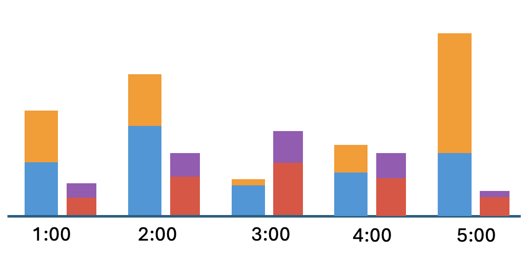 I can’t figure out how to get ‘stack_group’ to work group my stacked columns in Apex Charts. I’m trying to show one set of stacked columns showing a stack of each circuit’s hourly energy consumption, and next to that a column showing power generation. Here’s an example of how I am hoping to format my graph: