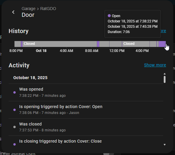 I’m trying to bring up an actionable notification when the gdoor is left open. It doesn’t trigger once the door opens. I had issues earlier with the script not triggering when my user was not Home (Away) but it does work for when a group (Myself and my wife) are both home and away. I’m missing something here. Thanks for the help.