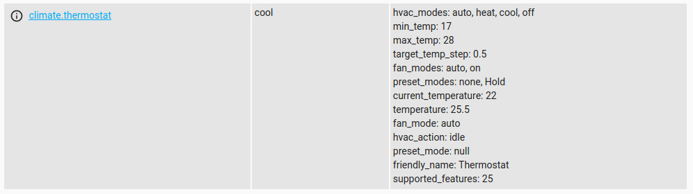 Here’s an example of my thermostat. It’s current state value is cool. I can use this: