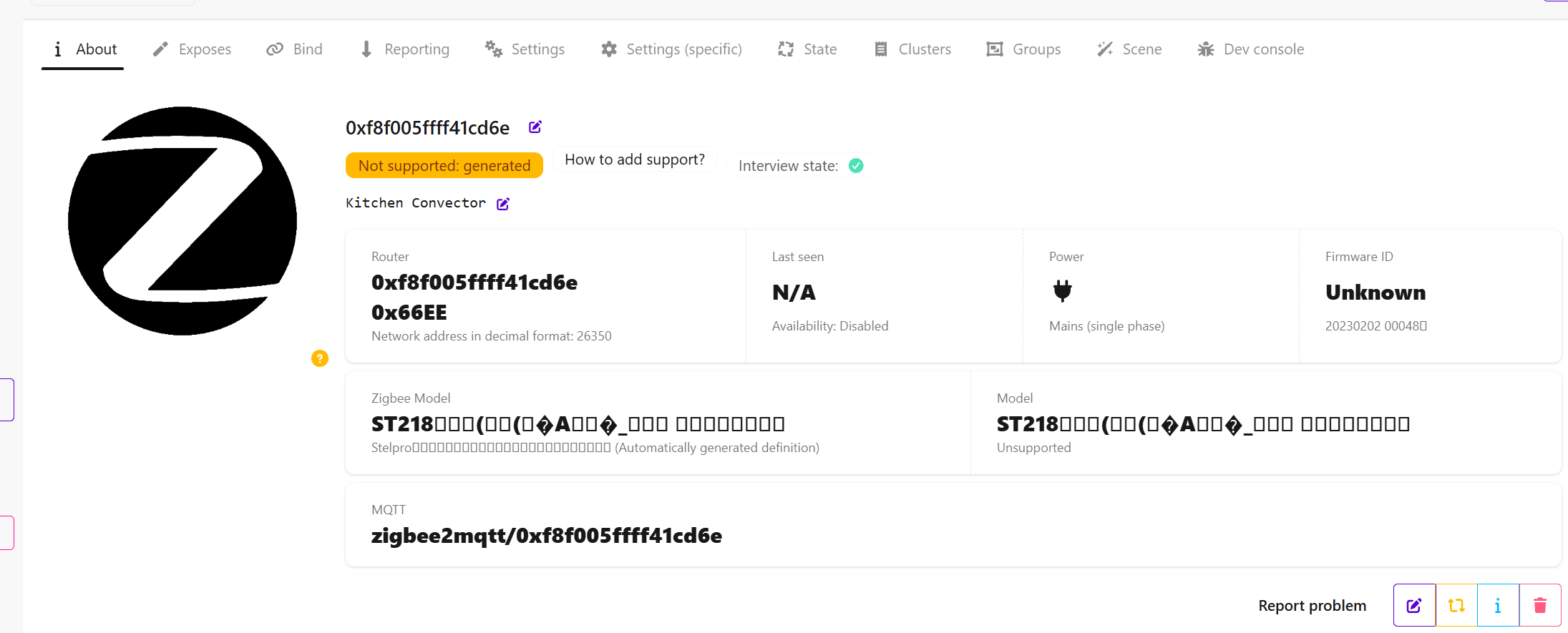 The convector is received and installed. Paired with Zigbee OK but unfortunately the info shows unsuported device.
