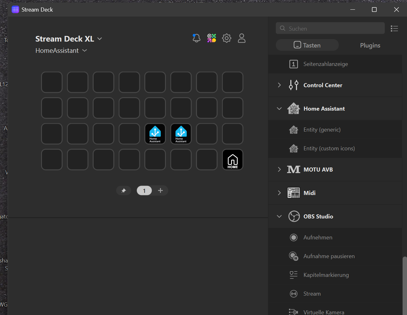 I installed the Home Assistant plugin from the Marketplace Stream Deck by Christoph Giesche.