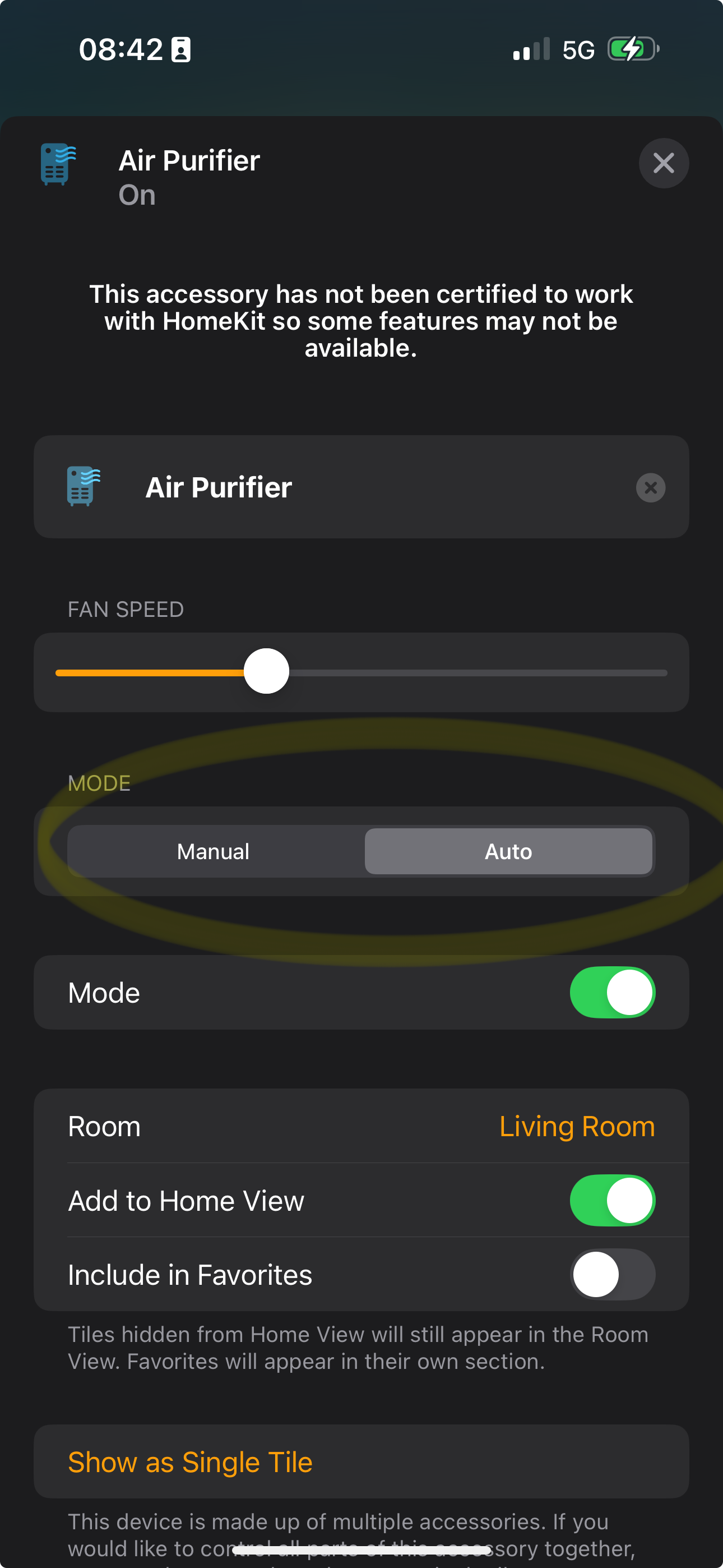 I’m using a Xiaomi Smart Air Purifier 5 Pro. Switching between Manual and Auto in HomeKit doesn’t work, I don’t know where the problem is and I’m not sure who to report this to.