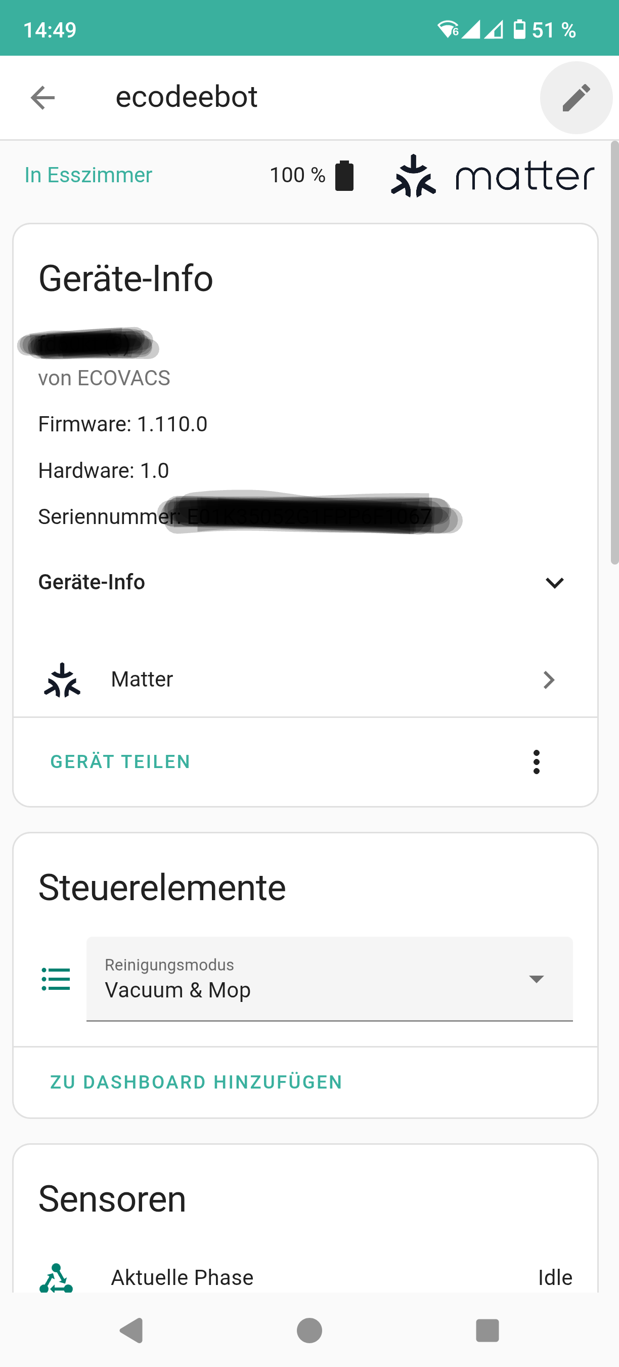 Update: They start releasing Matter Support in Germany today. After connecting I got only 5 Entities, missing the main vacuum entity for controlling the device