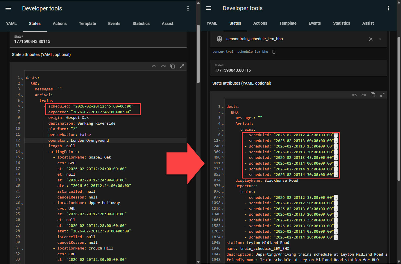 I have tried using {{state_attr(‘sensor.train_schedule_lem_bho’,‘trains’)[1].lines}} to retrieve by lines but it doesn’t seem to work from post here. Also since there are “repetitive” attributes I like to retrieve (e.g “Scheduled”), how do we identify them? is it by occurrence?