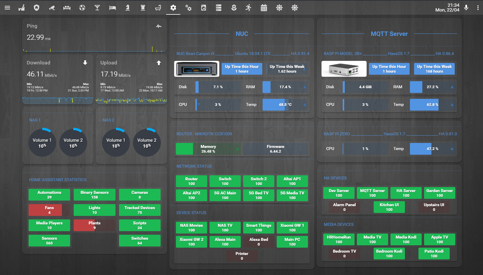 Mine is still a work in progress need to sort out some of the NAS resource monitoring and work out where I can squeeze in room for some more devices.