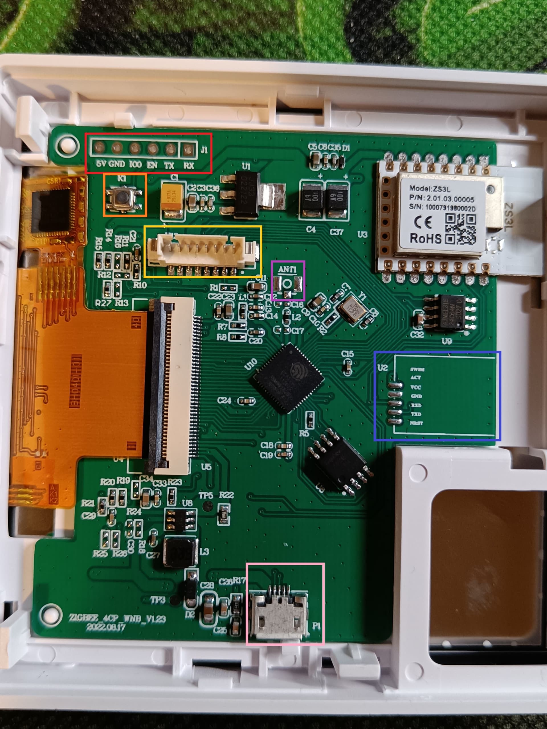 Next to both chips, there’s a JTAG connector to communicate with and possibly flash the device.