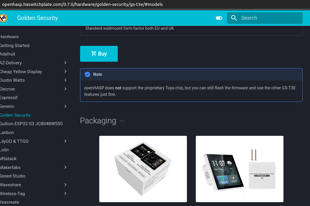 I bought a T3E display without buttons. I was under the impression that I could flash OpenHASP (or something similar) onto it. There’s an explanation for this here: https://www.openhasp.com/0.7.0/hardware/golden-security/gs-t3e/. But before I hit flash, it seems to me that this device doesn’t have an ESP32 chip in it.