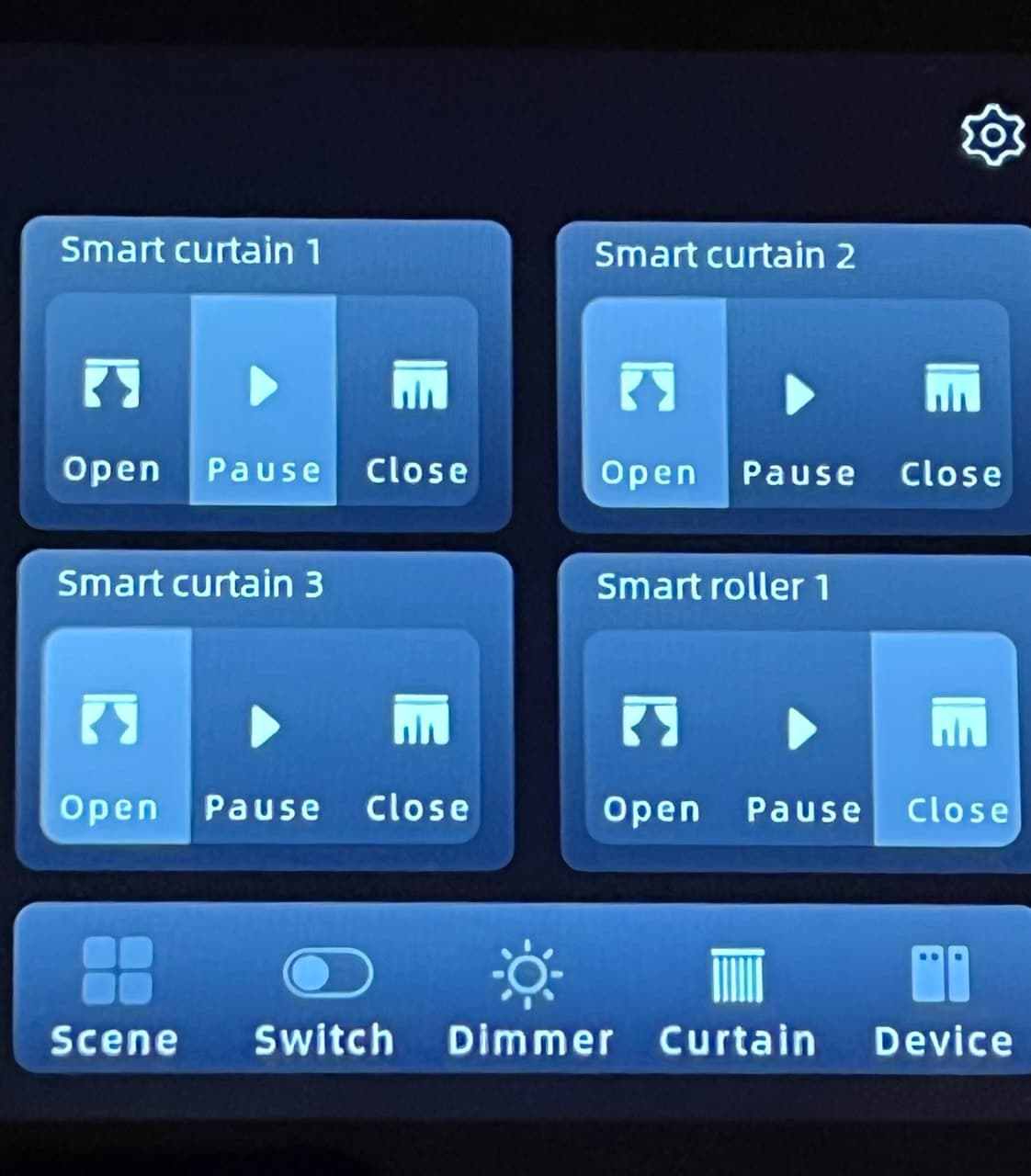 - Curtains: 1 / 2 / 3 / 4 — synced