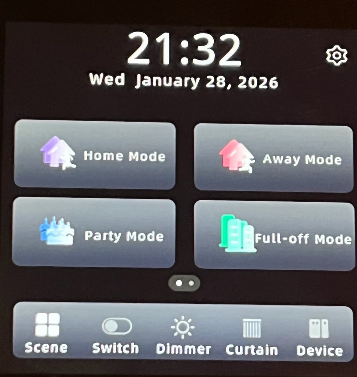 - Scene page 1 & 2: Home Mode / Away Mode / Party Mode / Full-off Mode (sync not applicable)