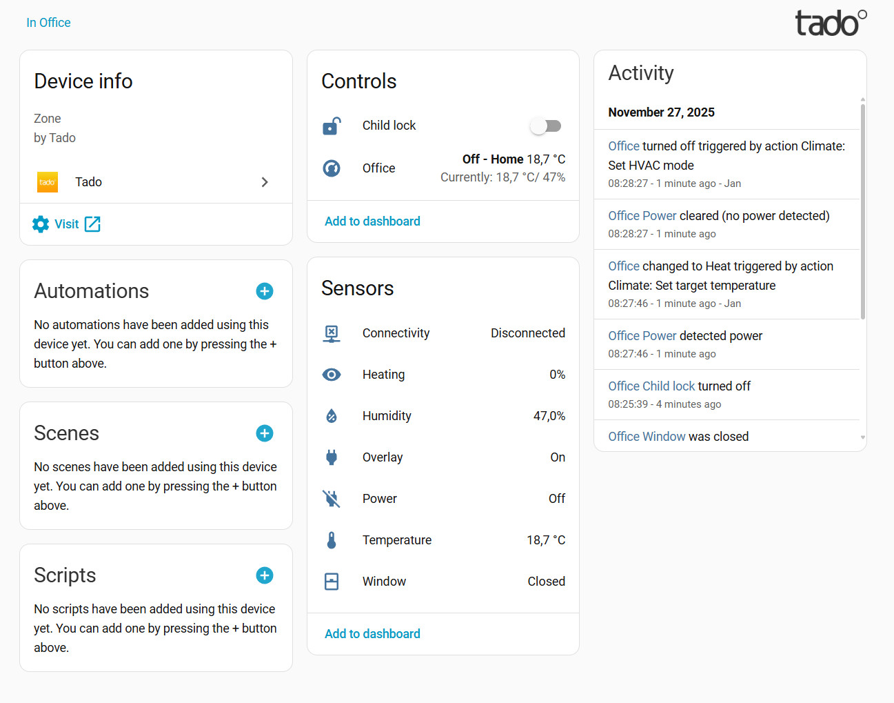 - No existing tado integration