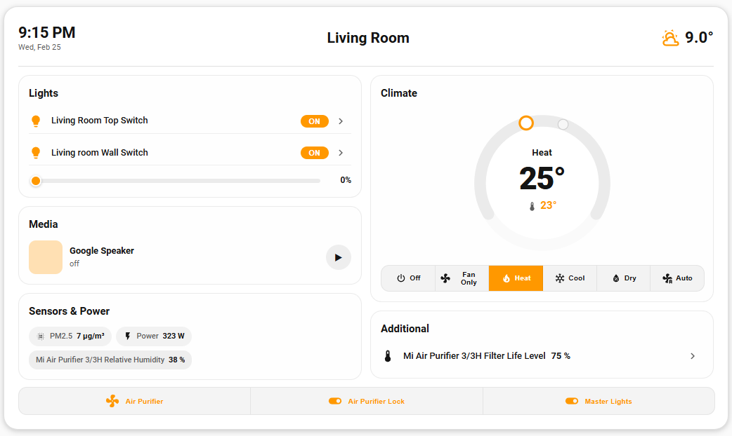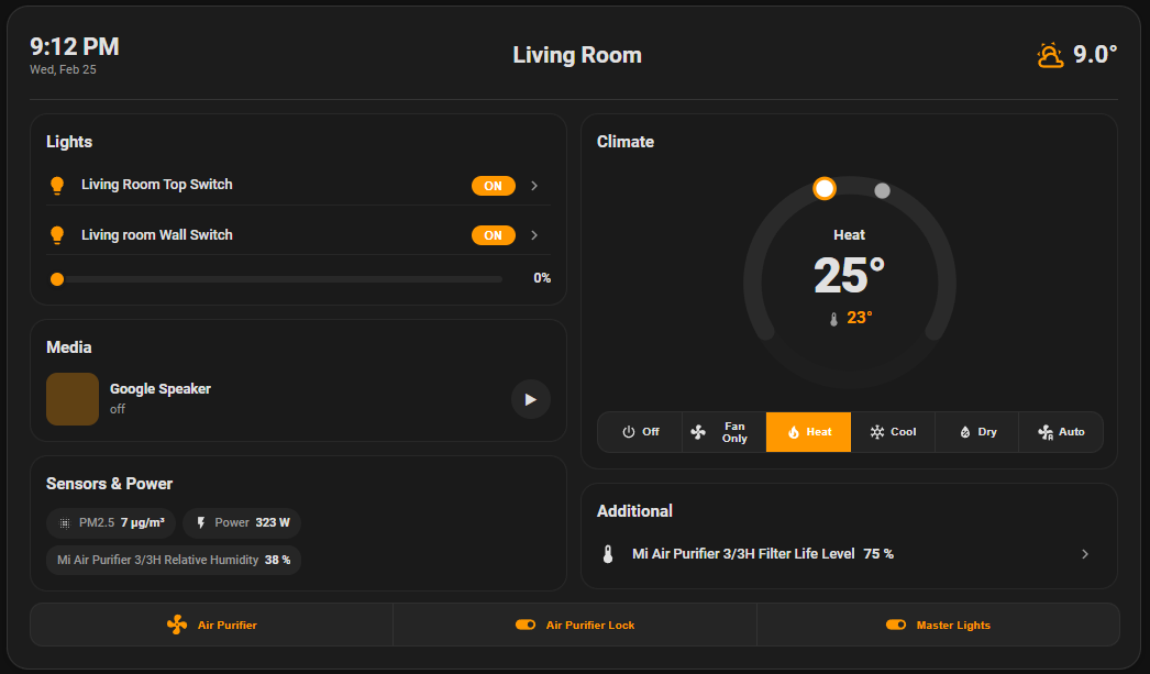 I really needed a card that would allow me to see and control most important information for the room at one place. Without scrolling, while being able to display important information that normally cannot fit in one screen.