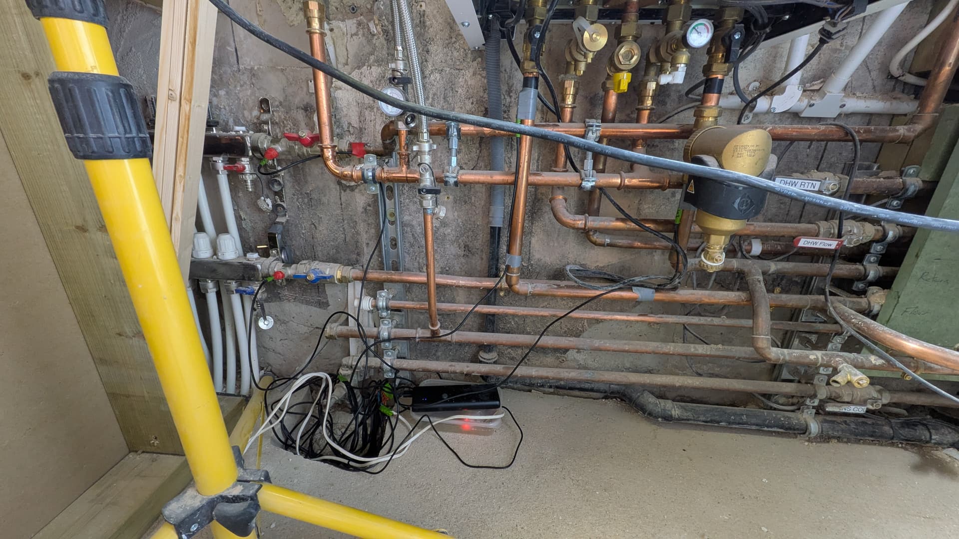 I got four sensors hooked up. Two two the manifold and two to the boiler. The boiler gives me the flow for the manifold and the boiler and it’s a few degrees out but I can correct that with a calculated sensor after I’ve collected enough data to extrapolate from. Processing: 1000044821.png…