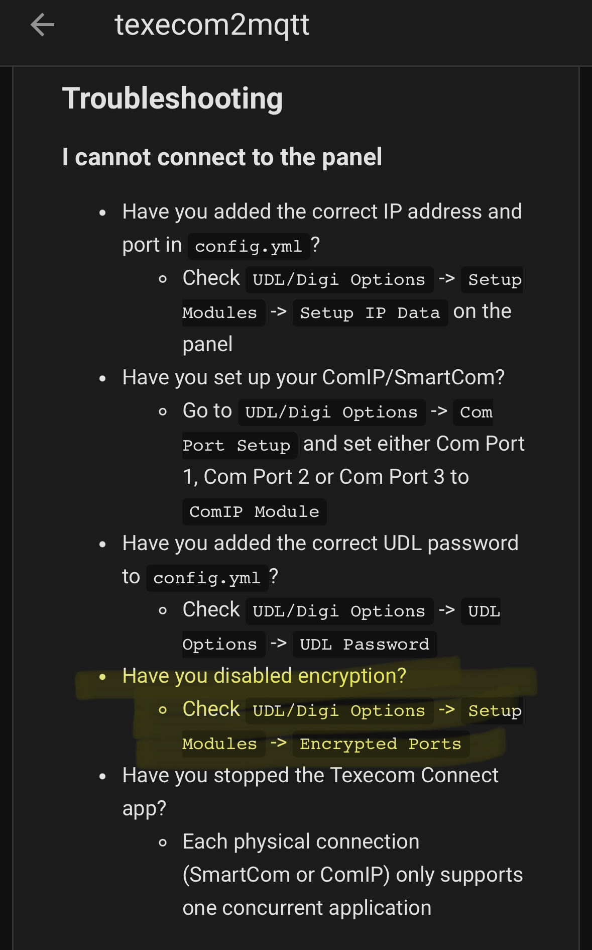 (FYI Google AI responds “disabling encryption for a Texecom alarm system is a very bad idea because it significantly compromises the system’s security, making it vulnerable to interception and manipulation. Texecom utilizes encryption as a fundamental security measure to ensure the reliability and safety of its systems and data transmission.”)