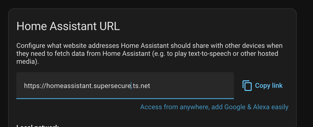 I also set URL in HA: