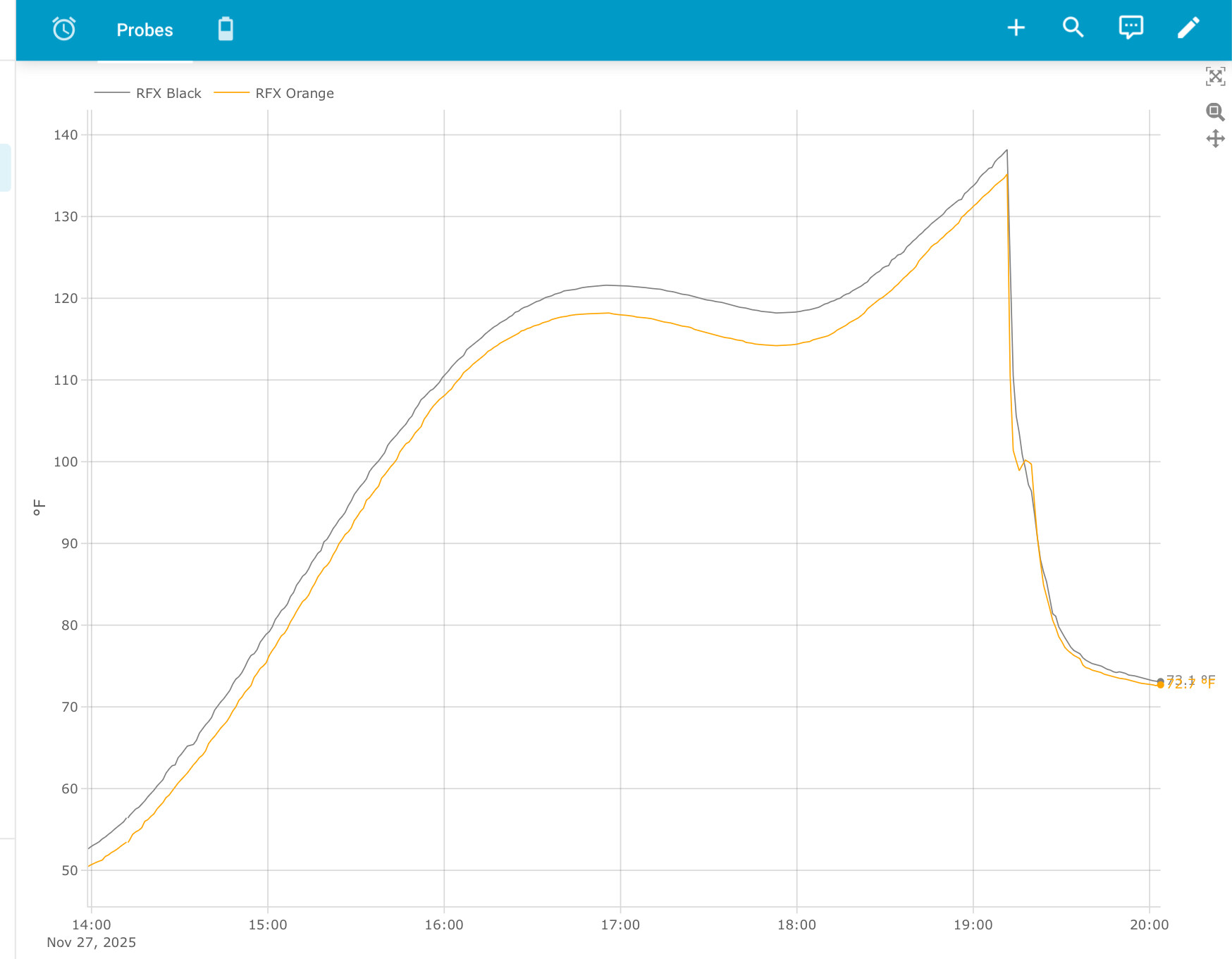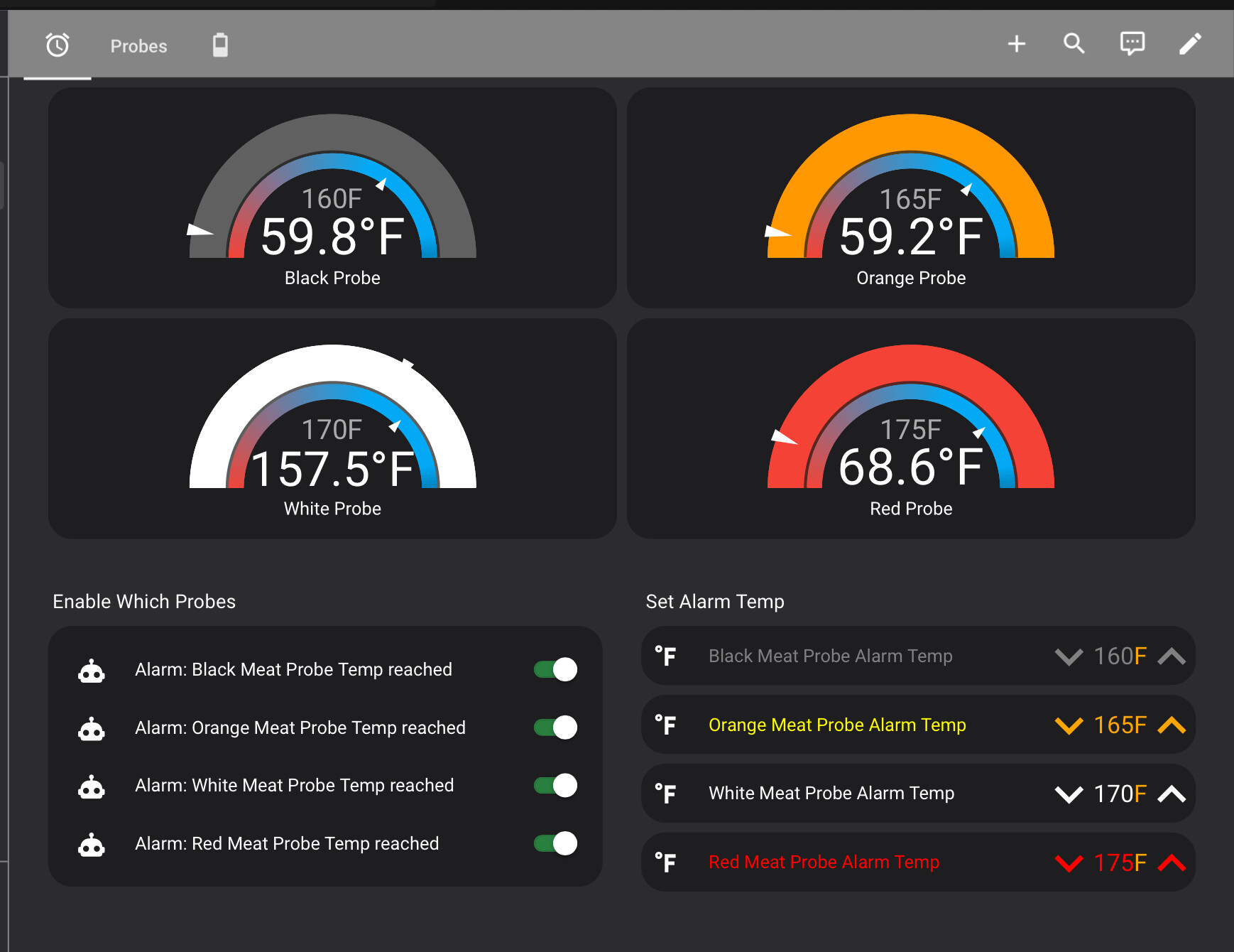 I spent quite a bit of time on these RFX Dashboards just before doing a reverse sear prime rib for Thanksgiving. Turning on a probe’s automation then shows it in all the dashboards. Turning it off hides it. The automation triggers cause Alexa to go nuts and send notifications to my iPhone. Pretty slick.