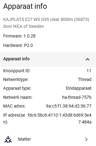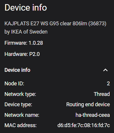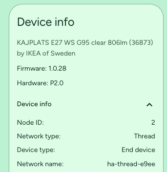 The new bulbs named Kajplats show up as end device: