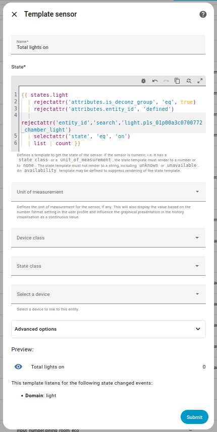 I’m trying to make a sensor that shows how many lights I have on and searching the forum I found some examples that I copied/pasted in configuration.yaml