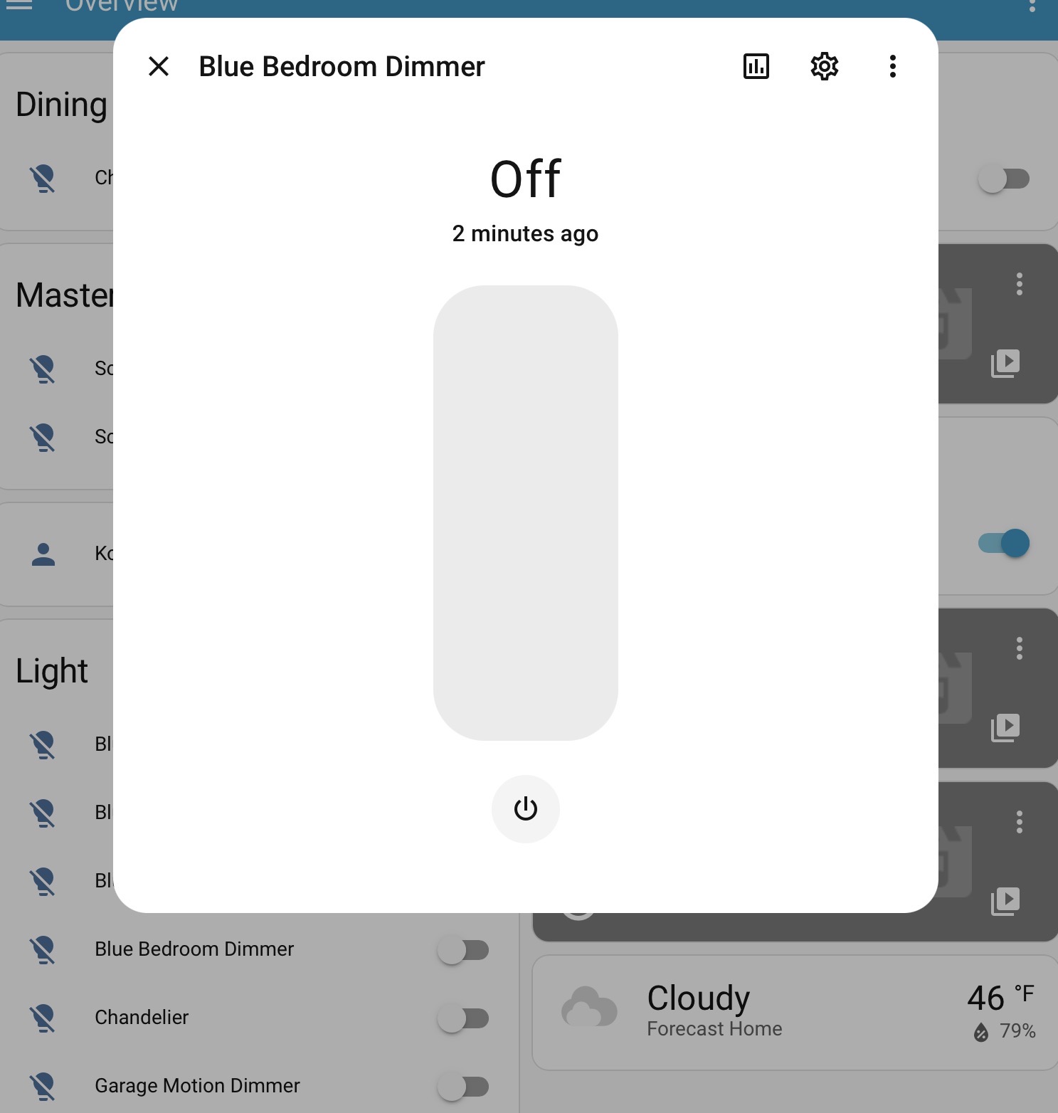Can you show a screenshot of the device page for one of your dimmers and show exactly where you’re clicking? The issue could be as simple as clicking on the toggle switch on the dashboard instead of clicking on the name to get more options.