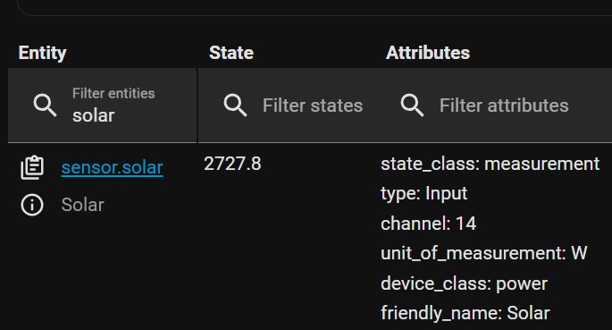 I’m watching this tutorial: Mastering Home Assistant Templates: A Beginner’s Guide at about the 8:50 point it gives the following example: {{ state_attr(light.desk_backlight’,‘energy’)}} with the result being 69.79. I tried to implement something like this in the Template editor for my system to try it out. I typed: {{ state_attr(‘sensor.solar’,‘power’)}} but the result I got was null and Result type:dict When I go into Developer tools this is what I see: