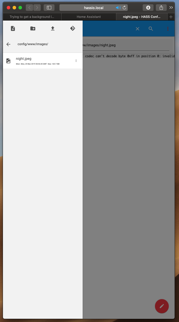 Hmmm… no success. I have a www folder in my config folder. On it an image called dark.jpg. I put this into the Lovelace editor (screenshot because c’n’p is not working on iOS)