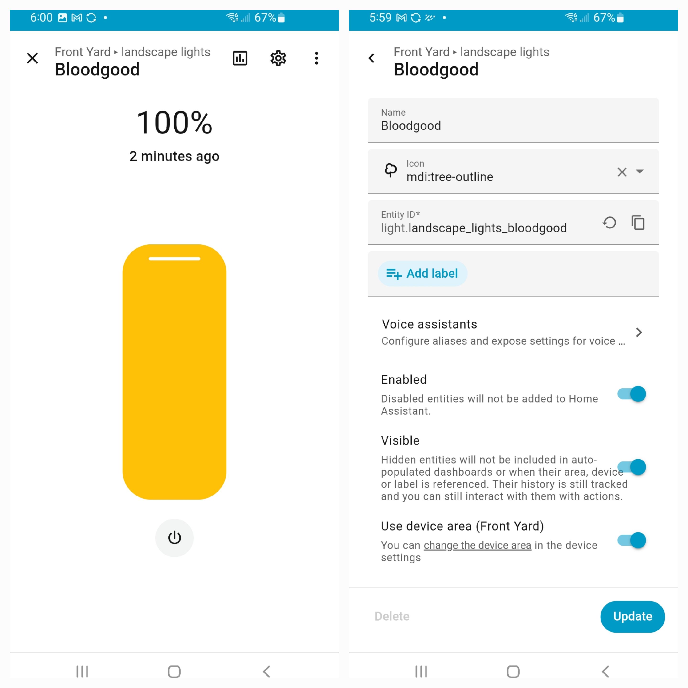 Maybe an example will make my point easier to understand. Here’s the correct way to configure any led/light in esphome and notice both On/Off toggle and a Slider to control brightness…