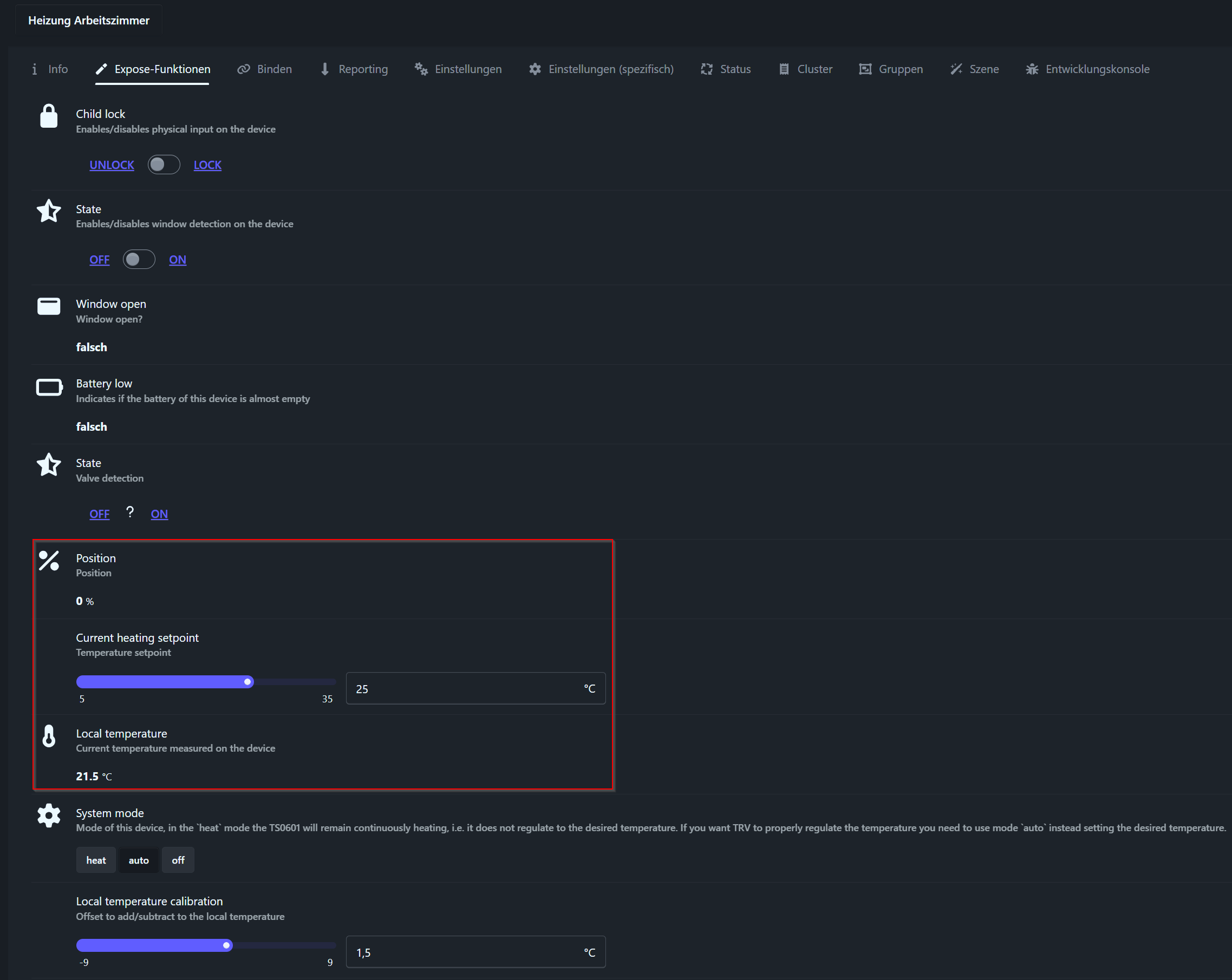 In Zigbee2MQTT, the reported values look correct: target and current temperature are accurate. However, the radiator remains cold and no heating is triggered.