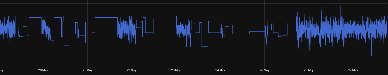 This one seems to be more stable but again, once in a while within a few days, it stops reporting anything for 5-10 minutes then continues as usual.