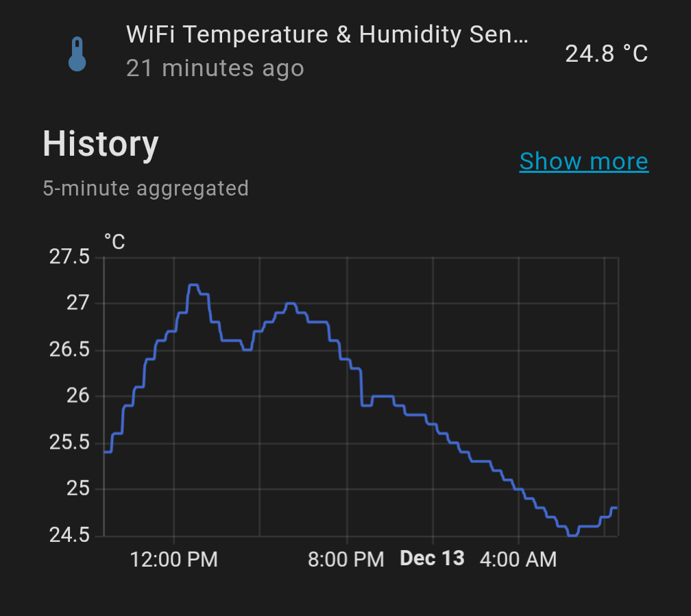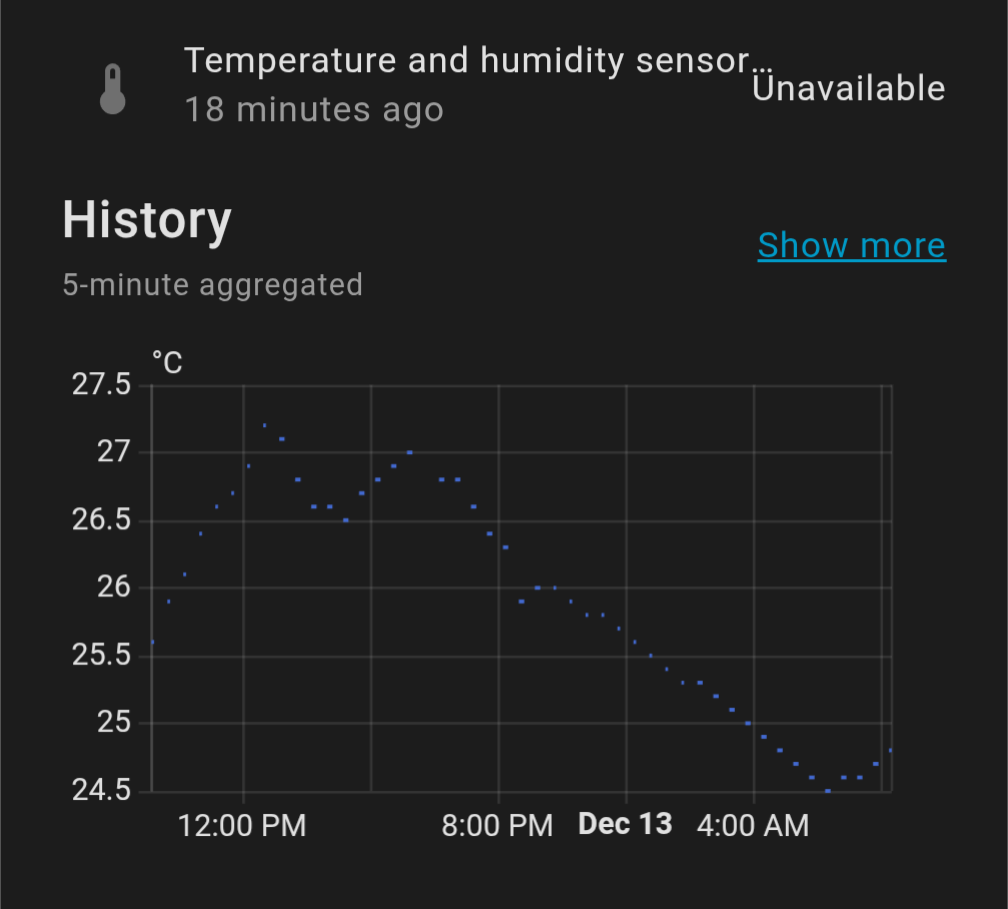 The first device I tried is a Wi-Fi temperature and humidity sensor. But the device is always unavailable unless it is currently updating its values (it was set to update every 30min in the Tuya Android app).