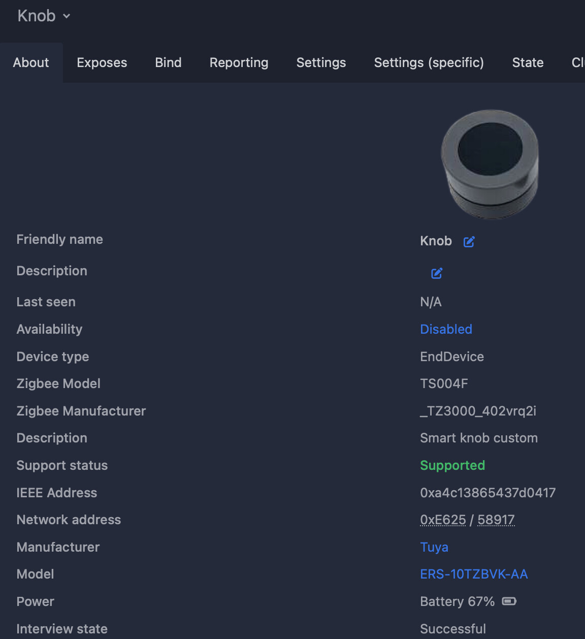 I can see “Smart knob custom” in Z2M for the knob’s description.