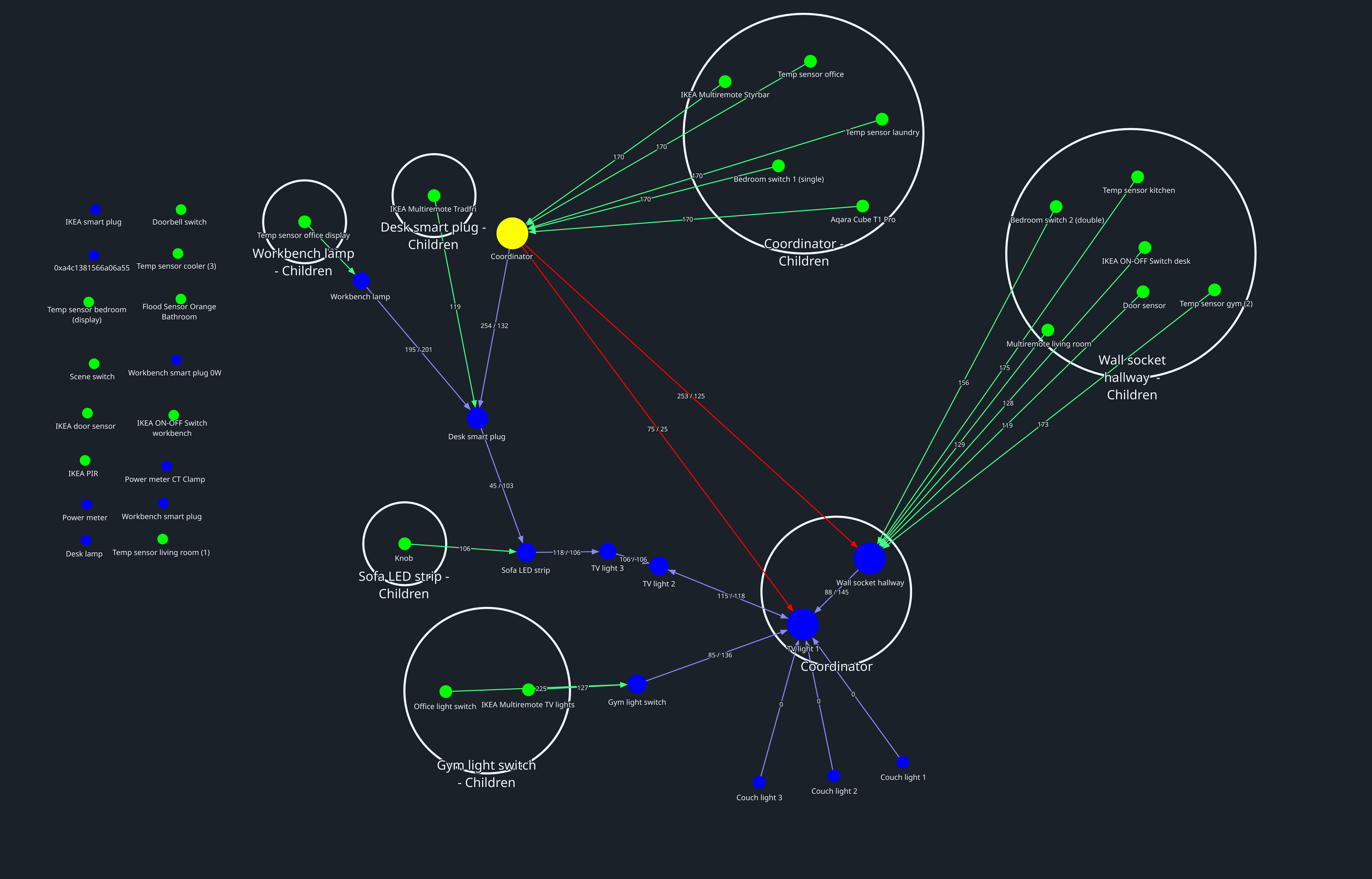 Blue dots: zigbee routers which should form the backbone of your mesh