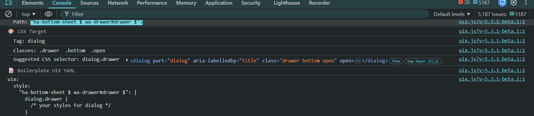 Also, make sure you are on 5.3.1 for uix_path() to suggest correct theming boilerplate for elements that can only be set by theming, as well as correct first shadow root selector.