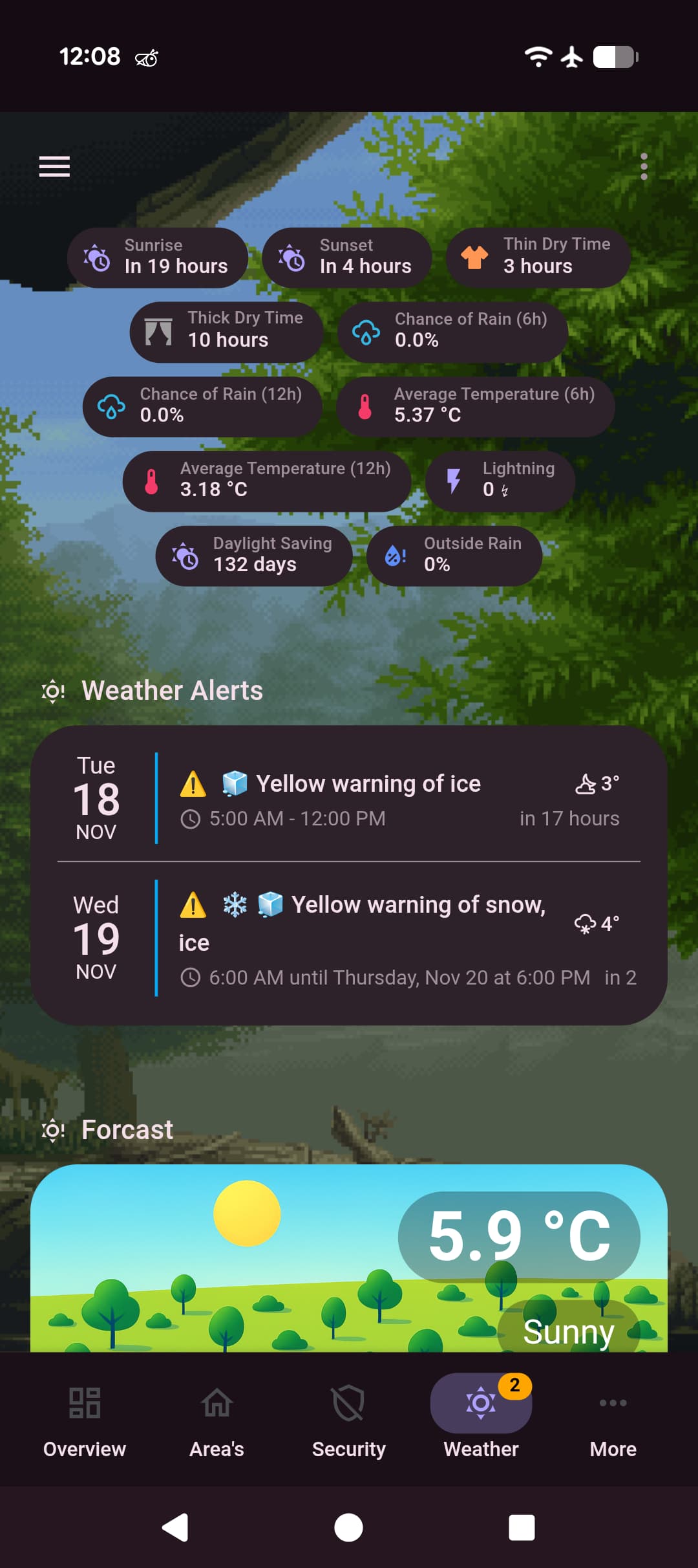 Don’t think I’ve missed any. The lightning sensor is just blitzortung integration and the custom card “blitzortung-lightning-card”. The “Outside Rain %” is just something I’m messing around with currently. I’ve got 2 soil moisture sensors sat outside open to the air and when they get wet that percent rises. It was working ok until it decided to get frosty and dewy on a morning