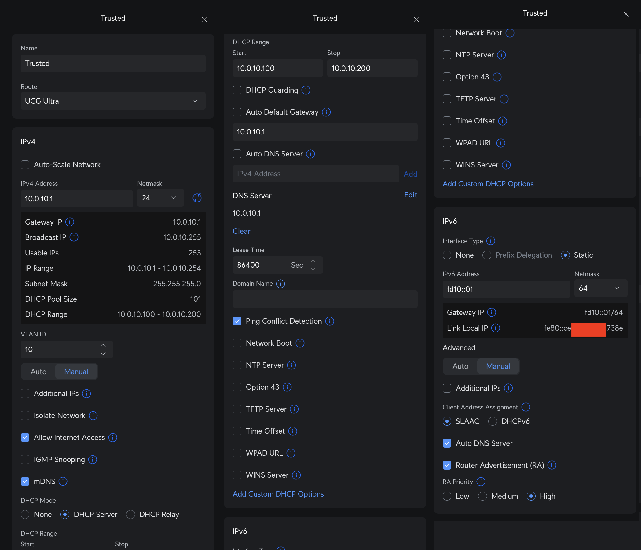 - Router: Unifi UCG Ultra - VLAN enabled (more details below)