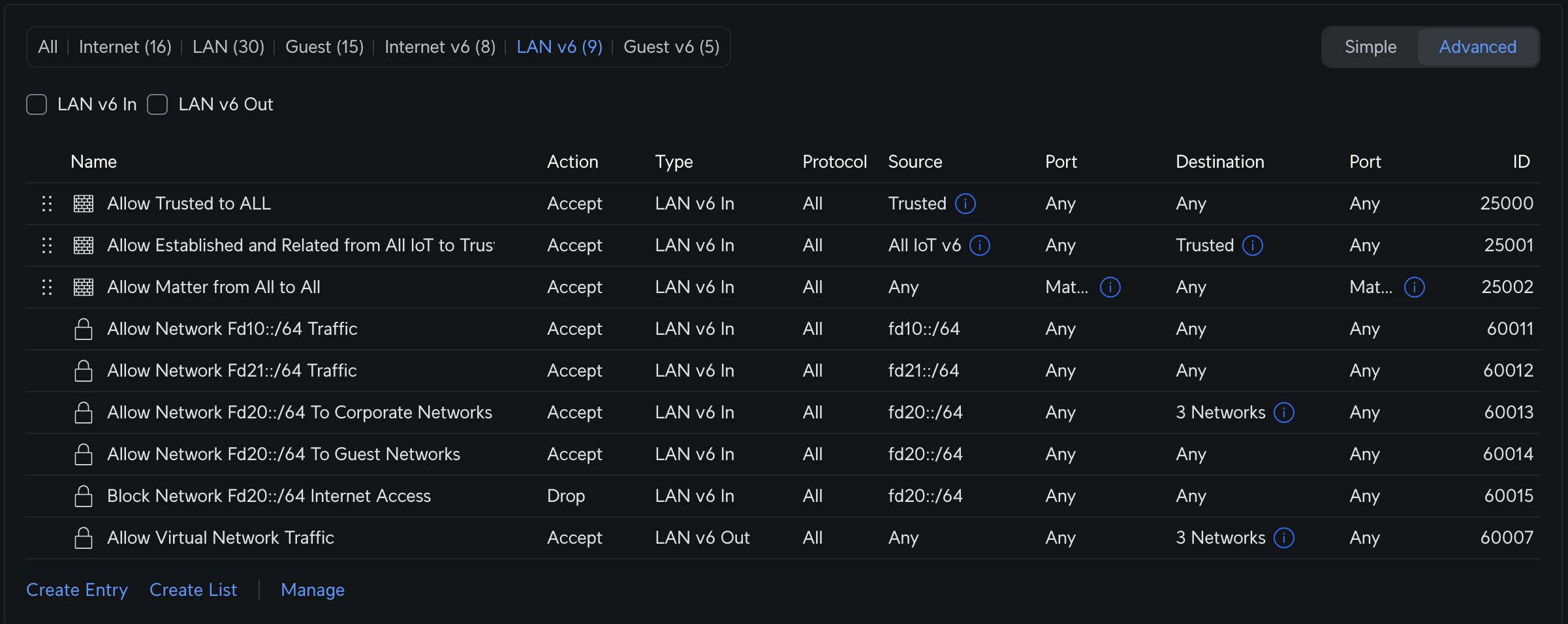 Firewall rules (IPv6):